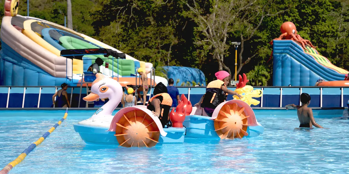 Participa en el desarrollo de tus hijos. El juego es esencial para el crecimiento de los niños. Invierte en su desarrollo llevándolos a nuestro parque infantil acuático. ¡Reserva tus boletos ahora y proporciona a tus hijos una experiencia enriquecedora y divertida!